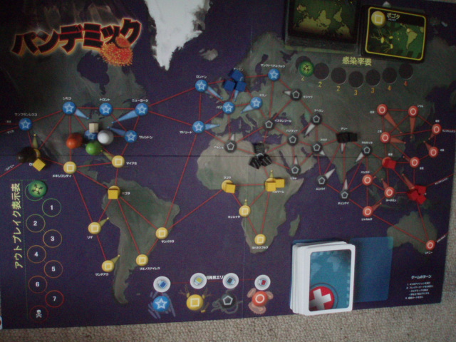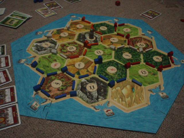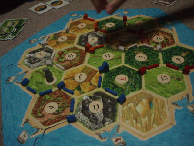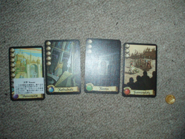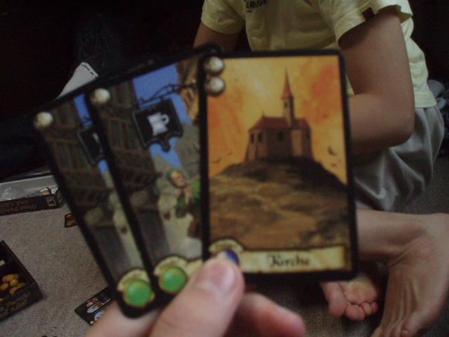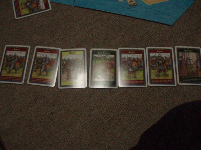 泥や木の資源のない私は、特殊カードを引きまくり、得点を稼ぎます。
